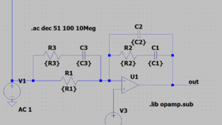 制御 LTspiceでラプラス演算子を使って位相補償(Type3)ブロックを作ってみる。 位相補償(Type3等)はオペアンプで実現できるが、各抵抗やコンデンサの定数を計算するのが手間である。今回は、LTspiceでラプラス演算子を使って位相補償(Type3)ブロックを作り、零点周波数や極周波数を直接指定して位相補償器を作れるよ... 2025.08.14 制御