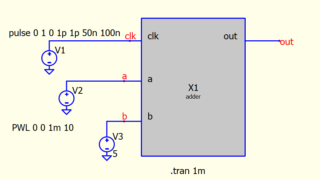 QSPICE QSPICEで簡単なVerilogシミュレーションをしてみる。 QSPICEでは、Verilogで記述されたブロックを作成し、それをシミュレーションすることができる。今回は簡単な加算器ブロックを作成し、Verilogシミュレーションしてみる。Verilogブロックを作成する手順 QSPICEのHELPで... 2025.08.23 QSPICE